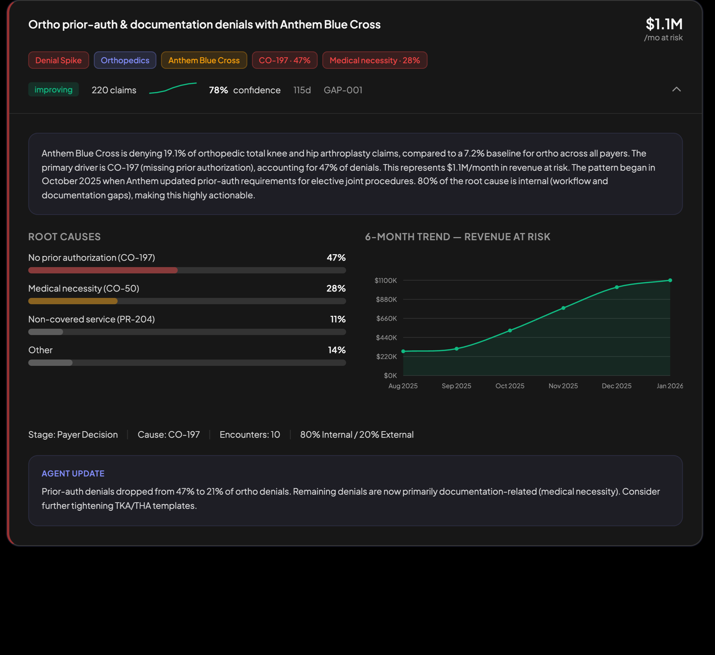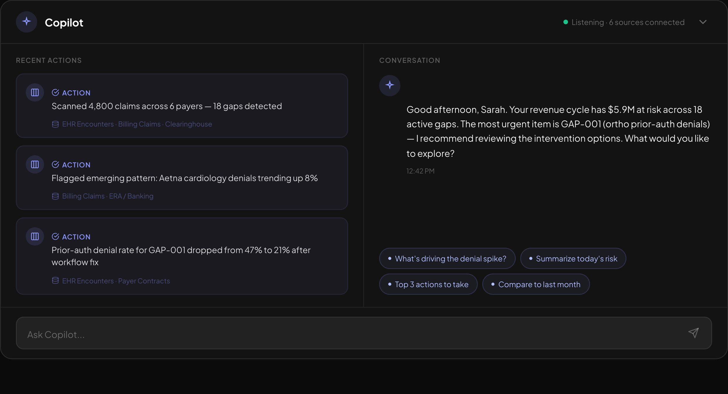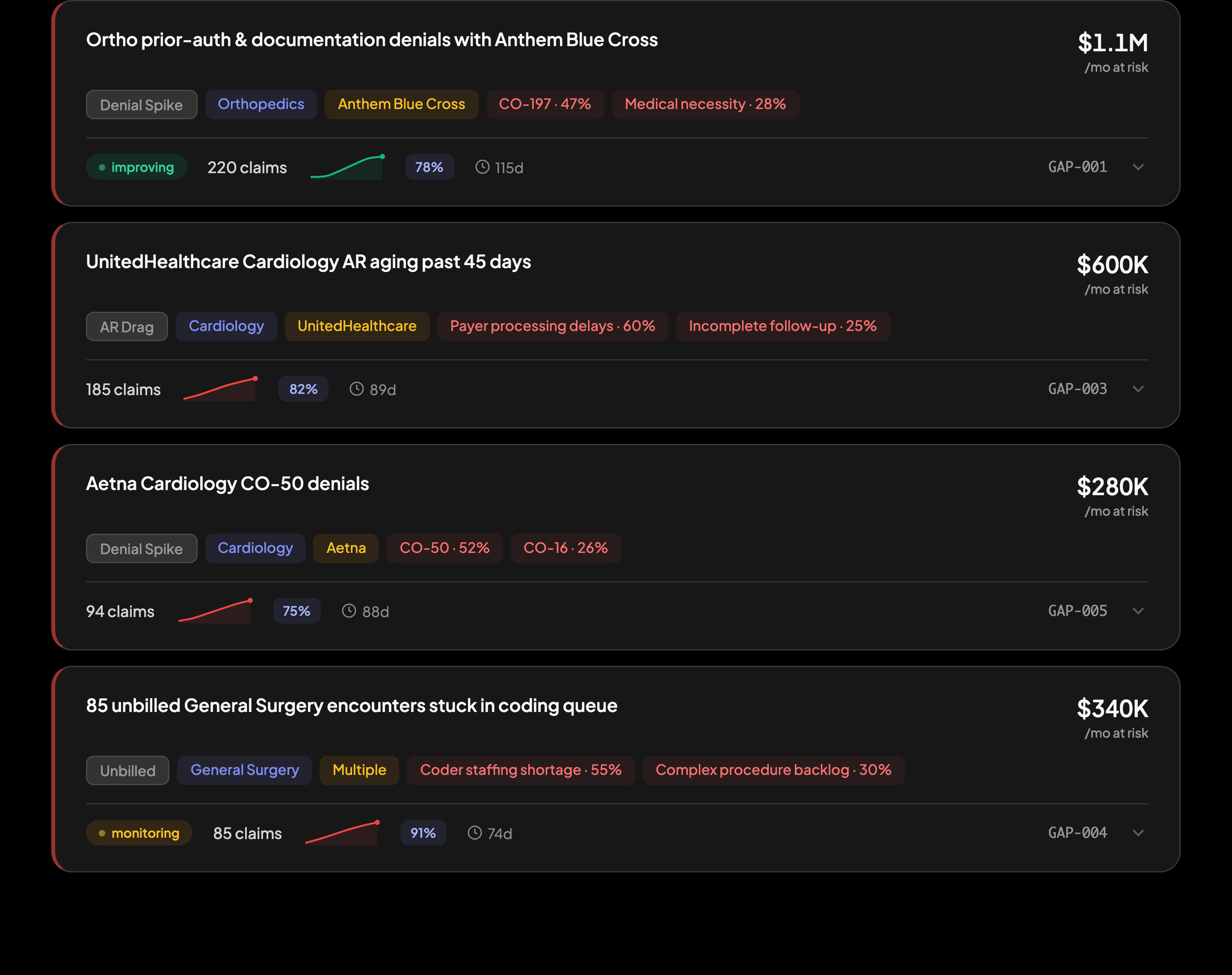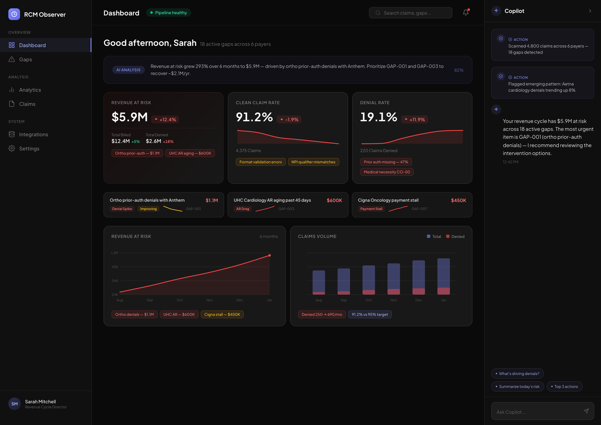 RCM teams logged into 20+ systems every week to manually build dashboards with stale data. By the time they spotted revenue leaks, it was too late to recover them.