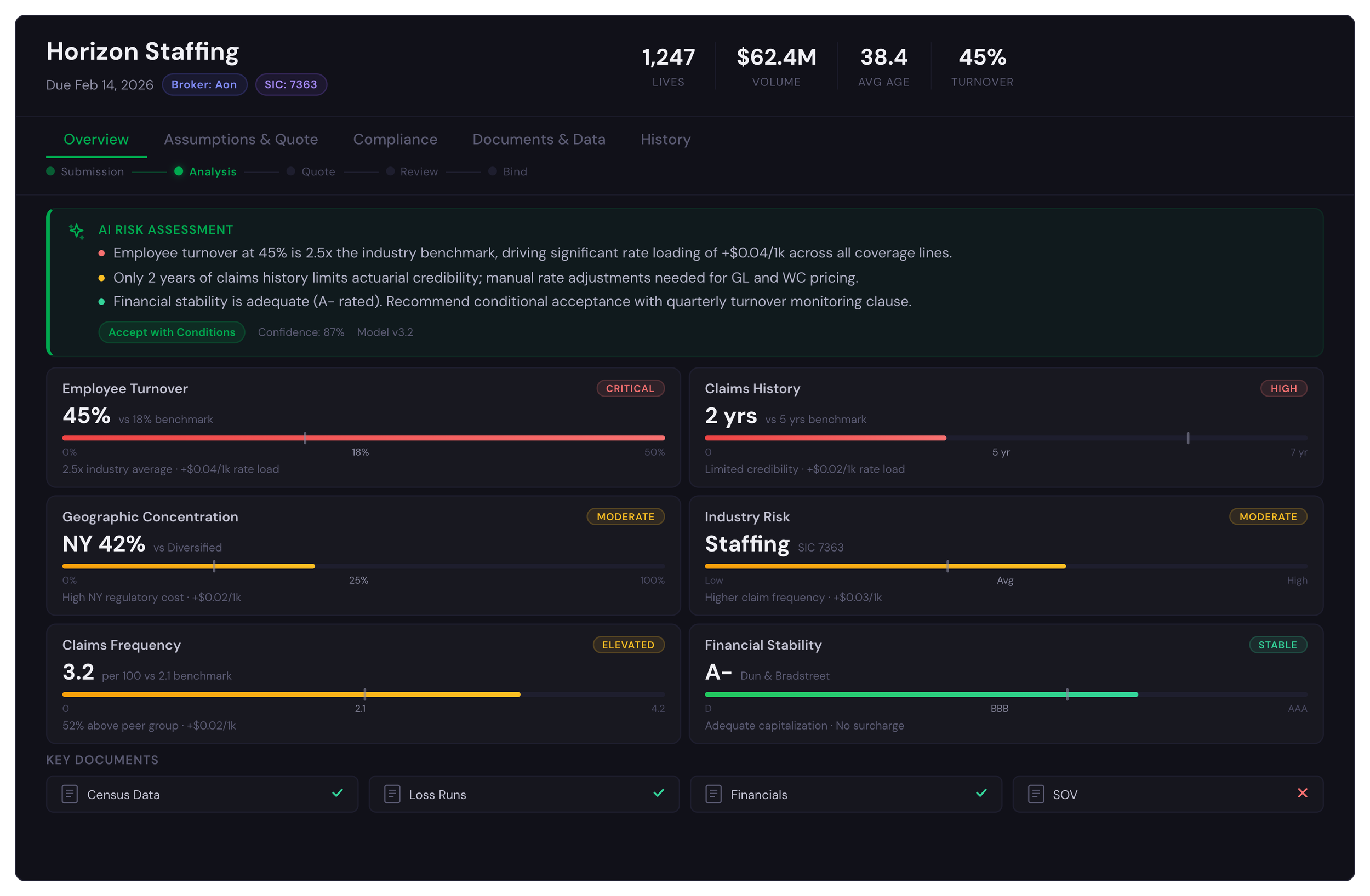 This led to AI-first workflows—where the system does the grunt work and actuaries make the decisions.
