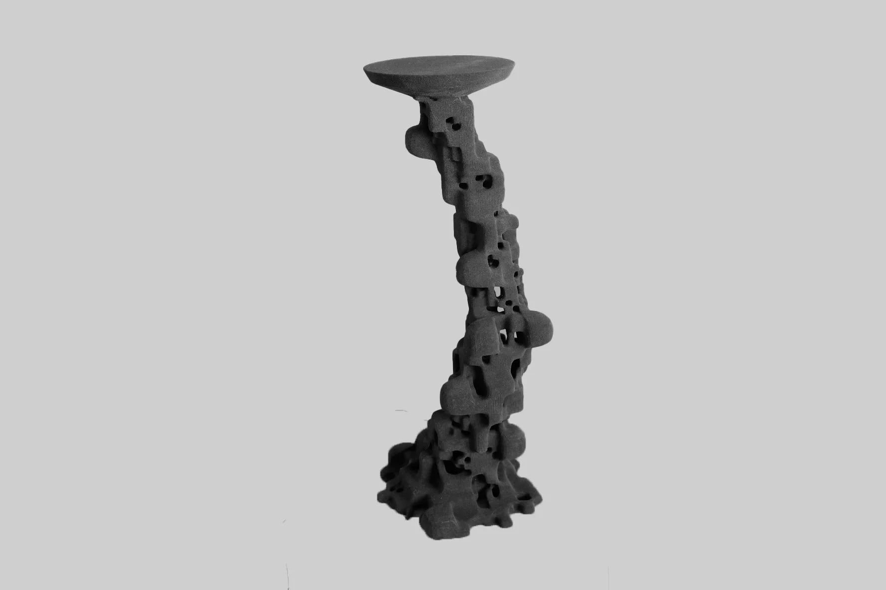 In his practice, Nellore employs advanced 3D scanning technology and a novel sculptural technique to forge unconventional, human-centered objets d’art. Through generative algorithms, photogrammetry, and advanced additive manufacturing techniques, he collaborates with machine intelligence to recreate a range of forms––from interior objects to human anatomies––delving into the essence of objects and demonstrating a new age of design in which data becomes material, and forms are shaped by machine perception.